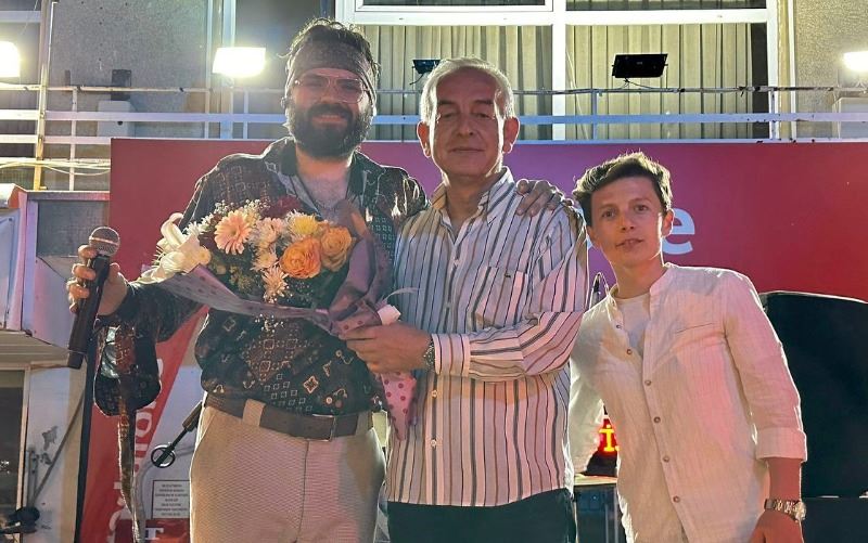 Konser sonunda Saray Belediyesi Kültür ve Sosyal İşler Müdürü Arif Naci Öngören Saray’a unutulmaz bir akşam yaşatan Retrobüs grubuna teşekkür ederek, çiçek takdim etti.