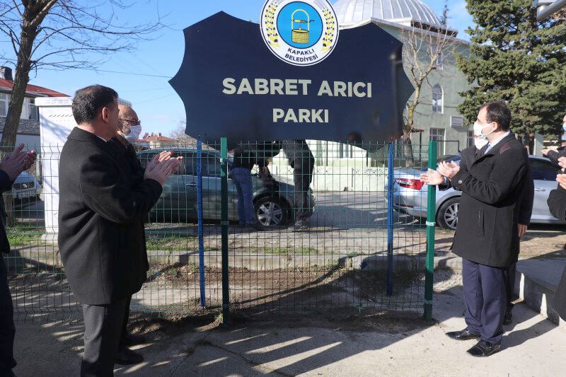 Arıcı’nın ardından Kapaklı Belediye Başkanı Mustafa Çetin de kısa bir konuşma yaptı. Başkan Çetin, Sabret Arıcı öğretmene Allah’tan rahmet dileyerek, “Sabret hocamızın biyografisini biliyoruz ama ben hocamızı yakinen tanıyan biri olarak ilçemizin, bölgemizin ihtiyaçlarını yaşına ve hastalığına rağmen heyecanla anlatmasından feyz aldık. Pınarça mahallemizde 1960 ihtilalinde başöğretmen ve muhtar olarak görev yapması hasebi ile buradaki mevcut parkımızda değişiklikler yaparak ismini parkımıza verdik. Hocamızın adını artık burada yaşatacağız, Allah rahmet eylesin mekanı cennet olsun inşallah. Eşi Kadir Arıcı ile son derece uyum içerisindeydiler Kapaklımızın örnek çiftlerinden oldular, Kadir ağabeyimiz bir çok sosyal sorumluluk projelerinde yer alıyor kendisine bir kez daha sizlerin huzurunda teşekkür ediyorum.” dedi.