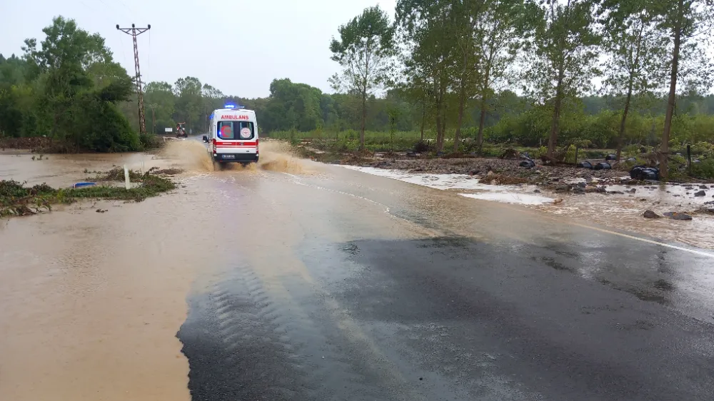 Kırklareli’nde bu saatlerinde bir anda bastıran şiddetli yağış dereleri taşırdı. Derelerin taşmasıyla İğneada Demirköy arasında bulunan bağlantı yolları sular altında kaldı.