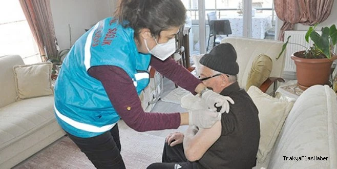 Tekirdağ`ın Muratlı ilçesinde sağlıkçıların ardından yaşlı vatandaşlara da CoronaVac aşısı uygulanmaya başladı. İlçede son olarak 80 yaşındaki Ahmet Atılgan?a ikametinde korona aşısı yapıldı. Tüm sağlık kurallarına riayet edildiği aşılamalarda, şimdiye kadar herhangi bir sorun ve şikâyetle karşılaşılmaması sevindirdi.