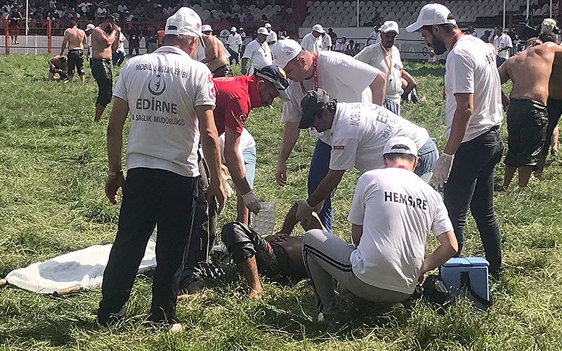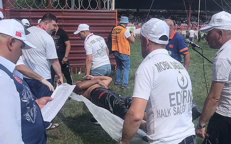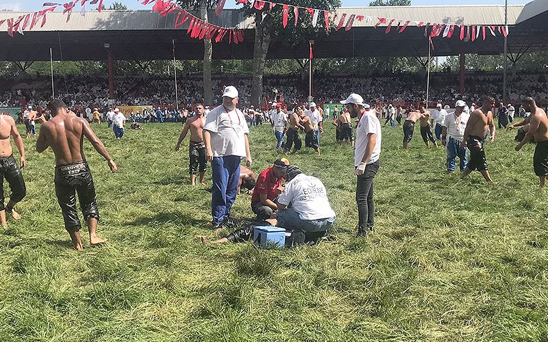661. Tarihi Kırkpınar Yağlı Güreşleri’nin ilk gün müsabakalarında kıran kırana gerçekleşen güreşlerde, kosta kırığı şüphesiyle bir pehlivan hastaneye kaldırıldı.