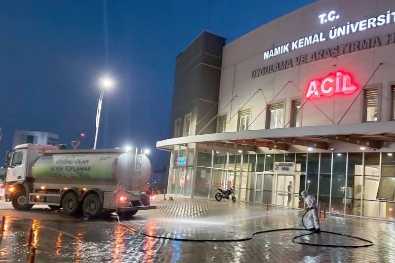 Süleymanpaşa Belediyesi Temizlik İşleri Müdürlüğü ekipleri tarafından yürütülen dezenfeksiyon çalışmalarda; 1. Kısım Devlet Hastanesi, Namık Kemal Üniversitesi Uygulama ve Araştırma Hastanesi, Ağız ve Diş Sağlığı Hastanesi, 100. Yıl Mahallesi Halis Bey Parkı, Muratlı Caddesi Şehitler Abidesi, Çiftlikönü Mahallesi Başbuğ Alparslan Türkeş Parkı, Çiftlikönü Caddesi ve bağlı sokaklar, Altınova Mahallesi Hüseyin Tetiker Sokak ile Orta Cami Mahallesi Kolordu Caddesi dezenfeksiyon işlemlerine tabi tutuldu.