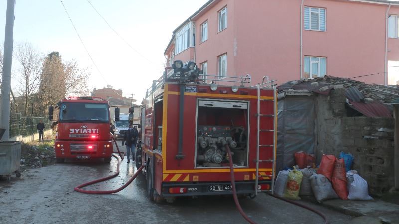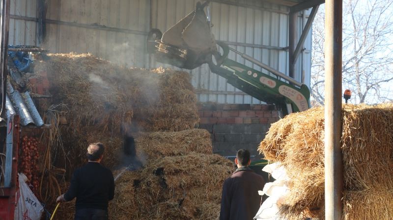 Edirne’de çiftlikte meydana gelen samanlık yangınında vatandaşlar hayvanlarını kurtarmak için seferber oldu.