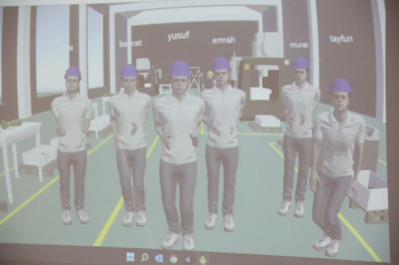 Katılımcılar, VR (Sanal) Gözlüklerle Dijital Model Fabrikaya bağlanarak çalışmalar gerçekleştirdi. Eğitimde, Dijital Model Fabrika için seçilen ürünün üretilmesi adına gerekli olan makinalar sanal gerçeklik ortamında, gerçek bir fabrika ortamındaymış gibi gözlemlenebildi.