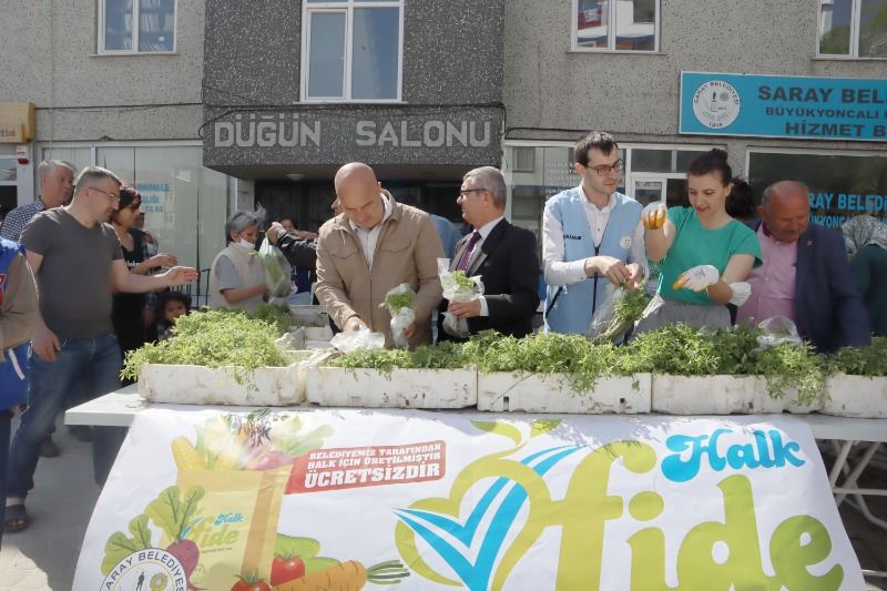 Saray Belediyesi kendi seralarında yetiştirdiği sebze fidelerini vatandaşlara ücretsiz olarak dağıttığı ‘Halk Fide’ projesi kapsamında ikinci dağıtımı Büyükyoncalı’da gerçekleştirdi. Dört ayrı çeşit domates ve salatalık fidelerinin halkla buluştuğu dağıtıma vatandaşlar yoğun ilgi gösterdi. Proje kapsamında çoğunluğu nesiller öncesine dayanan ata tohumları bölgedeki yetiştiricilerden toplandı. Belediyeye ait seralarda yetiştirilen fideler, büyütülmesi, ürün alınması ve yeniden tohumlarının toplanması için halka dağıtılıyor.