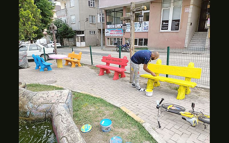 Saray Belediyesi Park ve Bahçeler Müdürlüğü ekipleri çalışmalarına aralıksız devam ediyor. Çevre düzenleme ve ağaçlandırma çalışmalarıyla ‘daha güzel ve daha yeşil bir Saray’ için çalışan Belediye ekipleri, ilçe merkezinde bulunan parklara ve havuzlara yeni bir çehre kazandırdı. Ayaspaşa Mahallesi Fabrika Caddesi’nde bulunan parktaki havuz ve banklar rengarenk boyanarak gökkuşağına büründü.
