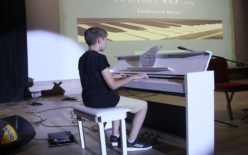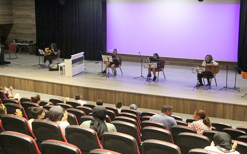 Yaz Atölyelerinde piyano, gitar ve ritim dallarında eğitim gören çocuklar eğitmenleri Doğanay Temurkan, Salih Demirci ve Volkan Turan koordinatörlüğünde muhteşem bir konsere imza attı. Ünlü bestekarların klasik eserleri ile izleyenleri büyüleyen piyano öğrencileri, büyük alkış aldı. Birbirinden güzel şarkıları seslendiren gitar ve ses eğitimi öğrencileri kulakların pasını silerken, ritim atölyesi de konsere renk kattı. İzleyenlerden tam not alan öğrenciler ayakta alkışlandı.