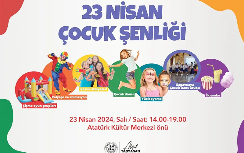 Saray Belediyesi tarafından 23 Nisan Salı günü saat 14.00-19.00 saatleri arasında Atatürk Kültür Merkezi önünde gerçekleşecek olan ‘23 Nisan Çocuk Şenliği’ etkinliklerinde çocuklar bayram coşkusunu doyasıya yaşayacak.