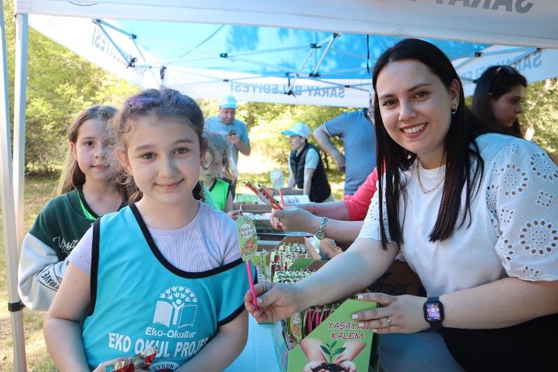 Saray Belediyesi Çevre Mühendisi Şebnem Ürkmez etkinliğe katılan öğrencilere teşekkür ederek, günün anısına öğrencilere yaşayan kalem ve doğa dostu bez çanta armağan etti.