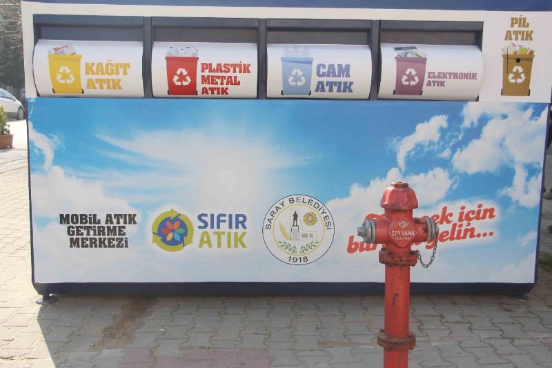 Mobil Atık Getirme Merkezi hakkında bilgi veren Saray Belediyesi Çevre Mühendisi Şebnem Ürkmez,“İdaremiz Makine İkmal Bakım Onarım Müdürlüğü kaynak atölyesi tarafından, kendi çalışma arkadaşlarımızla yaptığımız bir mobil atık getirme merkezi oldu. Sıfır atık yönetim planı kapsamında pilot bölgemiz Kemalpaşa Mahallesi olarak seçildi. Bu sebeple ilk olarak Kemalpaşa Mahallesine yerleştirdik. Amacımız tüm ilçe sınırlarındaki merkez mahallelerimiz ve kırsal mahallerimize mobil atık getirme merkezi yerleştirebilmek. Vatandaşlarımızın kolaylıkla atıklarını getirebileceği atık noktaları oluşturmak. Mobil atık getirme merkezine geri dönüştürülebilir ambalaj atıkları, elektronik atıklar ve atık piller getirilebilir. Özellikle vatandaşlarımızdan bunları evsel atıklarından ayrı biriktirerek, geçici depolama alanlarına getirmelerini rica ediyoruz. Bizler aracılığıyla da geri dönüşüme katkı sağlayacaklar” ifadelerini kullandı.