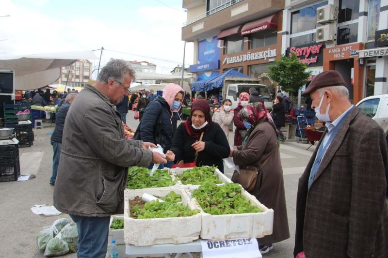 Saray Belediyesi’ne ait seralarda yetiştirilen marul ve ıspanak fideleri, halk pazarında vatandaşlara ücretsiz olarak dağıtıldı.