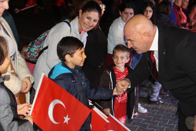 Cumhuriyet Konvoyunun ardından Atatürk Kültür Merkezi önünde havai fişek gösterisi gerçekleştirildi. 99’uncu yıl şerefine Saray semalarını süsleyen havai fişekler geceyi aydınlattı. Geceyi aydınlatan havai fişek gösterisi Saray halkını büyüledi.