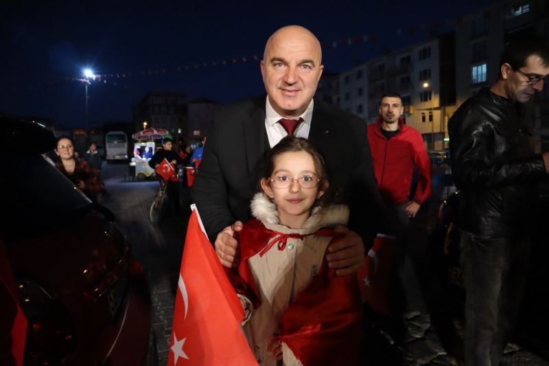 Saray Belediyesi, Cumhuriyetimizin 99’uncu doğum gününü, düzenlediği etkinliklerle büyük bir coşkuyla kutladı. 18.30’da Atatürk Kültür Merkezi önünde toplanan Cumhuriyet Konvoyu, araç kortejiyle ilçe turu gerçekleştirdi. Araç kortejiyle ilçe turu yapan Saray Belediye Başkanı Özgen Erkiş Saray halkını selamladı. Evlerinin balkonlarından bayrak sallayan, sokaklarda ve caddelerde selam veren vatandaşlar, konvoya sevgi gösterisinde bulundu.