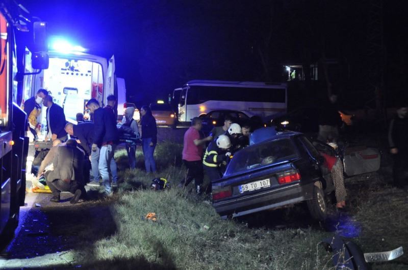 Tekirdağ’da iki otomobilin kafa kafaya çarpışması sonucu meydana gelen trafik kazasında 2’si ağır olmak üzere 9 kişi yaralandı. Kazaya karışan araçlardan biri ise paramparça oldu.