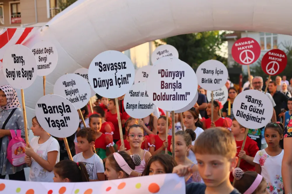 Saray Belediyesi 7. Uluslararası 14. Geleneksel Kültür, Sanat ve Barış Festivali kortej yürüyüşü, festival ateşinin yakılması ve barış güvercinlerinin uçurtulması ile başladı. Edirne Belediye Bandosu eşliğinde gerçekleştirilen kortej yürüyüşünde Saray’ın çocukları da taşıdıkları barış, savaşa hayır ve şiddete hayır pankartları ile dikkat çektiler.