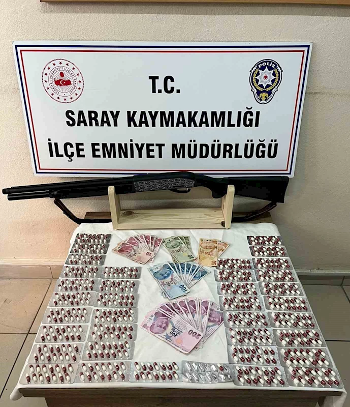 Tekirdağ İl Emniyet Müdürlüğü Saray İlçe Emniyet Müdürlüğü Suç Önleme ve Soruşturma Büro Amirliği ekiplerince, Saray’da iki adrese eş zamanlı operasyon düzenlendi. Operasyonlarda 509 adet sentetik ecza, uyuşturucudan elde edildiği değerlendirilen 3 bin 450 TL ve 1 adet ruhsatsız av tüfeği ele geçirildi.
