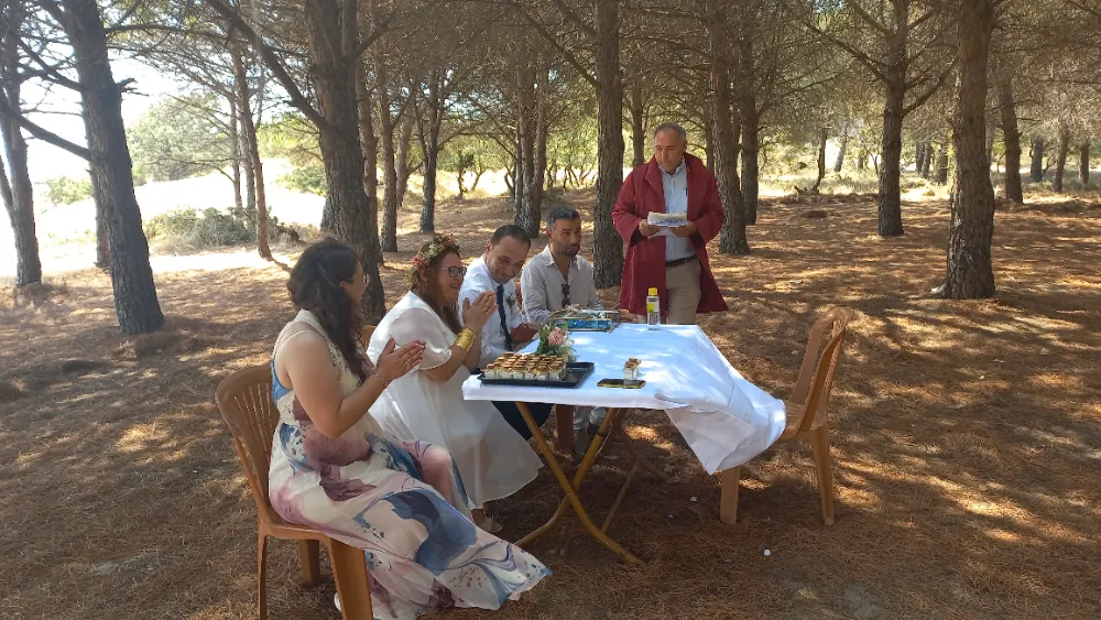Edirne’nin Enez ilçesinde bağlı Büyük evren köyünde yaşayan 34 yaşındaki Ekrem Atar ile Çorlu da bir fabrikada çalışan Nebahat Akartürk çifti, deniz ve ormanı sevdikleri için sahil ve orman içerisinde nikah yapmaya karar verdi.