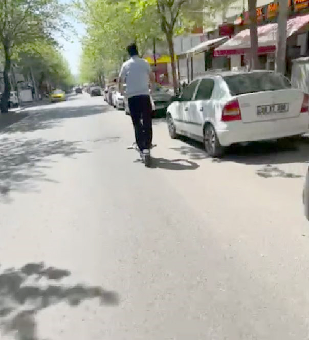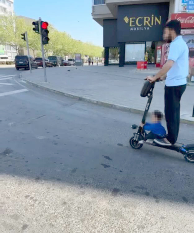 Maksimum hız limiti 50 kilometre olan elektrikli scooterlara kurallara göre yalnızca bir kişi binebilirken, ancak kurallara uymayanların da olduğu gözleniyor. Çorlu ilçesinde Reşadiye Mahallesi Şinasi Kurşun Caddesi ve Cumhuriyet Parkı mevkiinde elektrikli scooter kullanan bir kişinin ayak ucunda küçük çocukla yolculuk ettiği görüldü. Görenleri hayrete düşüren trafikteki yolculuk, tehlikeye davetiye çıkardı.