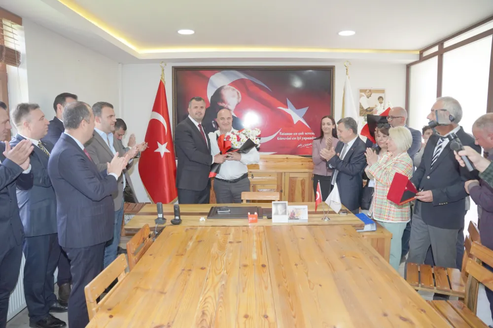 Saray Belediye Eski Başkanı Özgen Erkiş, Abdül Taşyasan’a Belediye Başkanlığı rozetini taktı ve Saray Belediye Başkanlığı mührünü takdim etti. Saray Belediye Başkanı Abdül Taşyasan ise Özgen Erkiş’e Cumhuriyet Halk Partisi’nin rozetini taktı.