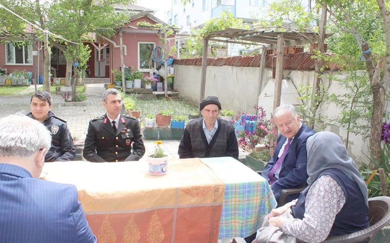 Kaymakam duru, “Bu güzel ve anlamlı geleneğimizi devam ettirerek bütün şehit yakınlarımızın bugün üç altın kuralımız olan ‘maske, mesafe ve temizlik.’ tedbirlerine uyarak sırasıyla ziyaret edip Ramazan Bayramlarını kutladık. Ziyaretlerimizde şehitlerimizin anneleri ve babaları ile sıcak, samimi ve içten sohbetle birlikte onların acılarını elimizden ve dilimizden geldiği kadarıyla hafifletmeye çalışıyoruz. Yine yürekten ve gönülden gelen sevgi ile şehitlerimizin ane ve babasına bizleri de manevi evlatları olarak görmelerini ifade ediyoruz. Hak Teala her daim bizleri şehitlerimize layık olan vatan evlatlarından eylesin inşallah.” diye konuştu.