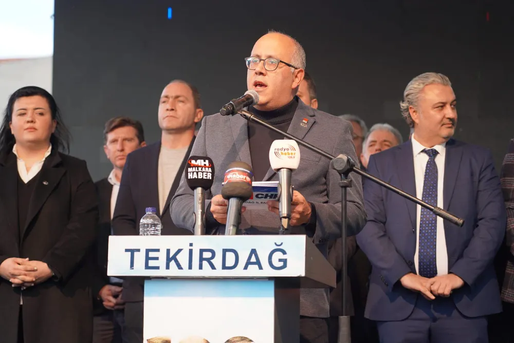 Saygı duruşunda bulunulması ile İstiklal Marşımızın okunmasının ardından ilk konuşmayı CHP Tekirdağ İl Başkanı Şenol Özgür Taşmerdivenli yaptı. Taşmerdivenli, “Bugün 12-0 ile ilimizdeki tüm belediyeleri alacağımız yerel iktidar yürüyüşümüzün de ilk adımıdır. Daha önce yaptığımız gibi yine yapacağız. Omuz omuza hep birlikte mücadele ederek Tekirdağ’ın tüm ilçelerinde başarıya ulaşacağız. Bu inançla buradan Tekirdağ Büyükşehir Belediye Başkan Adayımız Dr. Candan Yüceer ile bu mücadeleyi başlatıyoruz”ifadelerini kullandı.
