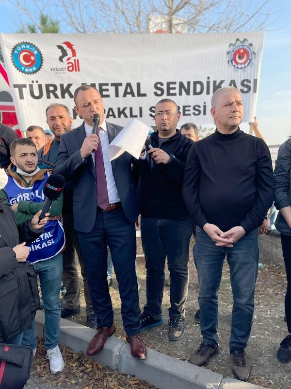 İşten çıkarmaya karşı suç duyurusunda bulunduklarını hatırlatan Özden, “Biz bugün itibari ile öncelikle Ekmeğinden edilen 3 arkadaşımızın uğradığı bu hukuksuzluktan başlayarak, işverenin bu hukuk tanımaz kanun tanımaz tüm gayri yasal ve gayri ahlaki davranışlarının hukuksal çerçevede takipçisi olacağız. Avukatlarımız şu an suç duyurusunda bulundular ve haksızlığa uğrayan bu 3 arkadaşımız adına davalarını açmış bulunuyorlar. Biz Türk Metal Sendikası olarak kavgadan yana değil, barıştan emekten yanayız. Üretmek Kazanmak Kazandırmak istediğimizi her sözümüzde söyler ve sadece bunu sözde bırakmayız, buradan 3M İşverenine sesleniyorum, gelin bu kanunsuz tavırlarınızdan vazgeçin. İnsanların haklarını yemekten Türkiye Cumhuriyeti Kanunlarını çiğnemekten vazgeçin yaptığınız bu yanlıştan bir an önce geri dönün. İnsanların Ekmeği ile oynamaktan vazgeçin. Bu gün burada basın açıklamasıyla başlayan eylemimiz gittikçe büyüyecek ve büyüyerek devam edecektir. Bakın size bir kez daha buradan elimizi uzatıyoruz. Bu eli havada bırakmayın bu yanlıştan bir an önce dönün. Biz iyi niyetimizi gösterdik bir adım attık eğer sizin de niyetiniz uzlaşmaktan yana ise sizde bir adım atıp bize bu niyetinizi gösteriniz.” diye konuştu.