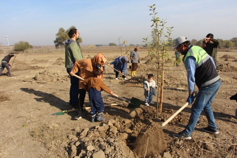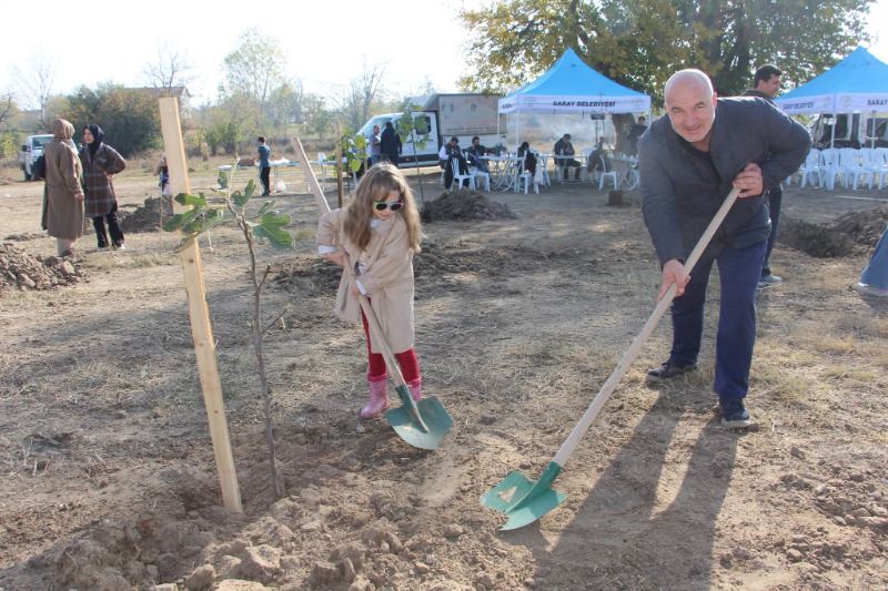 Konuşmaların ardından Saray Belediye Başkanı Özgen Erkiş, Şenlendirme Vakfı temsilcileri, Saray Belediyesi Park ve Bahçeler Müdürlüğü ekipleri ve çocuklarla birlikte 50 adet meyve ağacını toprakla buluşturdu.