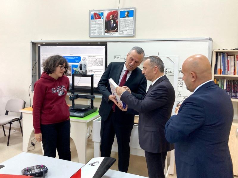 Kaymakam Nazmi Günlü, Çerkezköy ilçe Millî Eğitim Müdürü Hüseyin Gümüş ve Danışman Öğretmen Selçuk Özel, Seval-Ahmet Çetin Fen Lisesi öğrencisi Nihal Bengisu Açar'dan proje hakkında bilgi aldıktan sonra çalışmalarından dolayı tebrik ederek başarılarının devamını diledi.