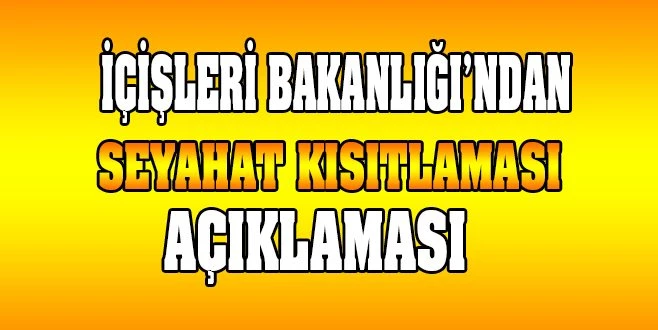 İçişleri Bakanlığı, bugün sona erecek olan seyahat kısıtlamasıyla ilgili, "31 ile yönelik giriş/çıkış kısıtlaması, yarın kabine toplantısında yeniden değerlendirilmek üzere, pazartesi saat 24.00`a kadar uzatıldı" açıklaması geldi.