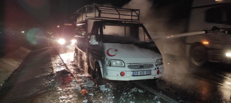 Kırklareli’nde seyir halindeyken yanmaya başlayan kamyonet itfaiye ekiplerince söndürüldü.
