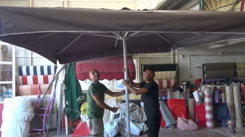 Edirne’de 3 kuşaktır saraciye işi yapan Ahmet Üstev, “Yaz ayları havalar sıcak olmasıyla birlikte çok şükür işler arttı. Havaların güneşli olması sıcak olması milletin gölgeye ihtiyaç duyulmasından dolayı işlerimiz bereket versin olduğundan fazla yani yoğunluk var. Evlere genellikle körüklü balkon brandası mafsallı dükkan önlerine tenteler yapıyoruz. İş yerleri önlerine açılır kapanır tavan sistemlerimiz bu arada onlar yoğun" dedi.