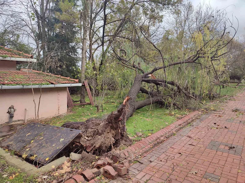 Edirne’nin Keşan ilçesinde şiddetli rüzgar nedeniyle ağaçlar kırılırken, Mehmet Gemici Cennet Bahçesi geçici süre kullanıma kapatıldı.