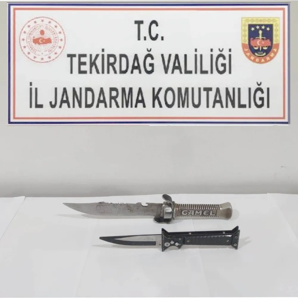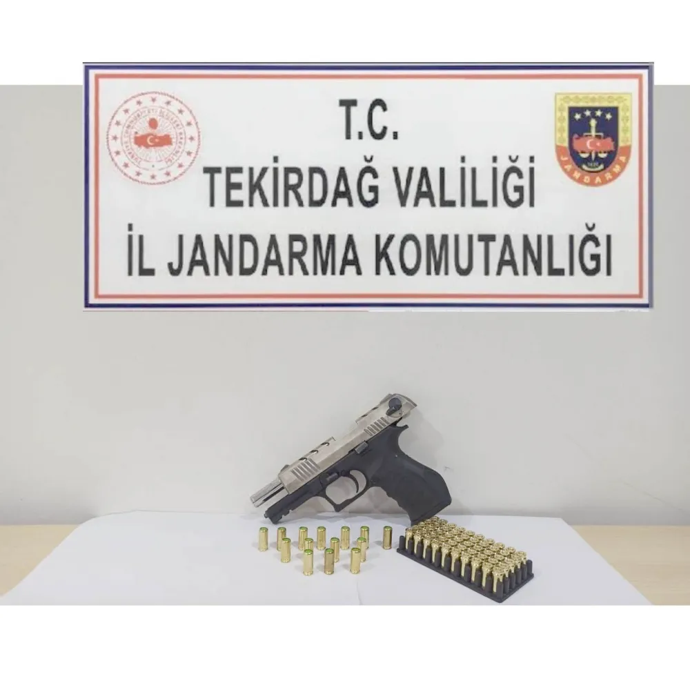 Tekirdağ İl Jandarma Komutanlığınca Çerkezköy ilçesi Veliköy Mahallesi’nde M.D. isimli şahsın üzerinden kurusıkı tabanca, 1 adet şarjör ve 64 adet kuru sıkı mermi; E.S.’nin üzerinden ise 1 adet kasatura ve 1 adet sustalı bıçak ele geçirildi.