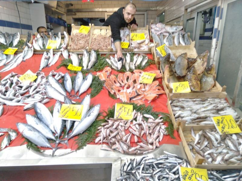 Balıkçı tezgahında ziyaret ettiğimiz Ayaş, “Balık çeşitlerimiz bolluk var ve hepsi taze. Kış mevsiminde mutlaka haftada iki defa balık yenmelidir. Çoçukların gelişimi, yaşlıların omega-3 desteği için balıkların düzenli tüketilmesinde fayda var. Bu sezon fiyatlarımız uygun çeşidimiz çok. Tezgahımızda hamsinin kilosu 30 TL, istavrit 30 TL, İthal uskumru 15 TL, Alabalık 15 TL, Norveç Somunu 100 TL, Karadeniz Somunu 50 TL” dedi.