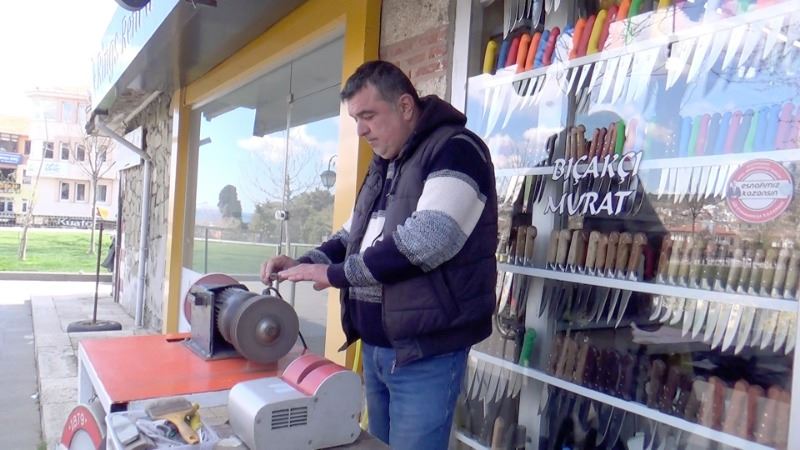 İşyeri sahibi Murat Bıçakçı ise, “Ata mesleğimiz olan bıçakçılık ile uğraşıyoruz. Dedelerimizden kaldı. Ben dördüncü kuşağım, beşinci kuşak oğlumu yetiştiriyorum. İnşallah altıncı kuşağa da geleceğiz. Aşağı yukarı otuz beş senedir bu işi yapıyorum. Elli yaşındayım, on beş yaşından beri aynı yerde aynı mevkii de devam ediyoruz işlerimize. İşi babamdan öğrendim, o da babasından öğrendi. Babamın en büyük ideali bu mesleği devam ettirmemdi. Ben de devam ettirdim, ettiriyoruz da. Oğluma tavsiye ettim, o da iyi. Bileme ve diğer işlerde iyi, o da devam ettirecek inşallah. Mesleğimizin zorlukları var. Kullandığımız ürünler çelik malzemeden yapılıyor. Döviz kuruna bağlı olarak onların da fiyatları artıyor. Biz de vatandaşlarımıza bıçak satabilmek için kar marjlarımızı düşürdük. Gençlerin bu işe talebi var. Gençler bu işe önem veriyor. Daha ziyade üretim kısmında imalatçı olmak istiyorlar ama altyapıları yok. Gelip soruyorlar, öğrenmek istiyorlar. Biraz zorluk çekecekler. Her işte olduğu gibi bu işte de zorluklar var. Önce sevmeleri gerekiyor. Oğlum bu işte yetişti, bundan sonra emanet edebilirim. Bizim işimiz önce görerek başlar. Bıçağı elime alayım, bilemeye başlayayım demekle olmaz. Her bıçağın kendine has özellikleri vardır. Kemiksiz bıçağının, fileto bıçağının, kuşbaşı bıçağının hepsinin bilemeleri farklı. Ona göre hepsini görüp yetişecekler. Kasap bıçağıdır, satırdır hepsi değişik özelliklere sahip. Oğlum hepsini yavaş yavaş öğreniyor” dedi.