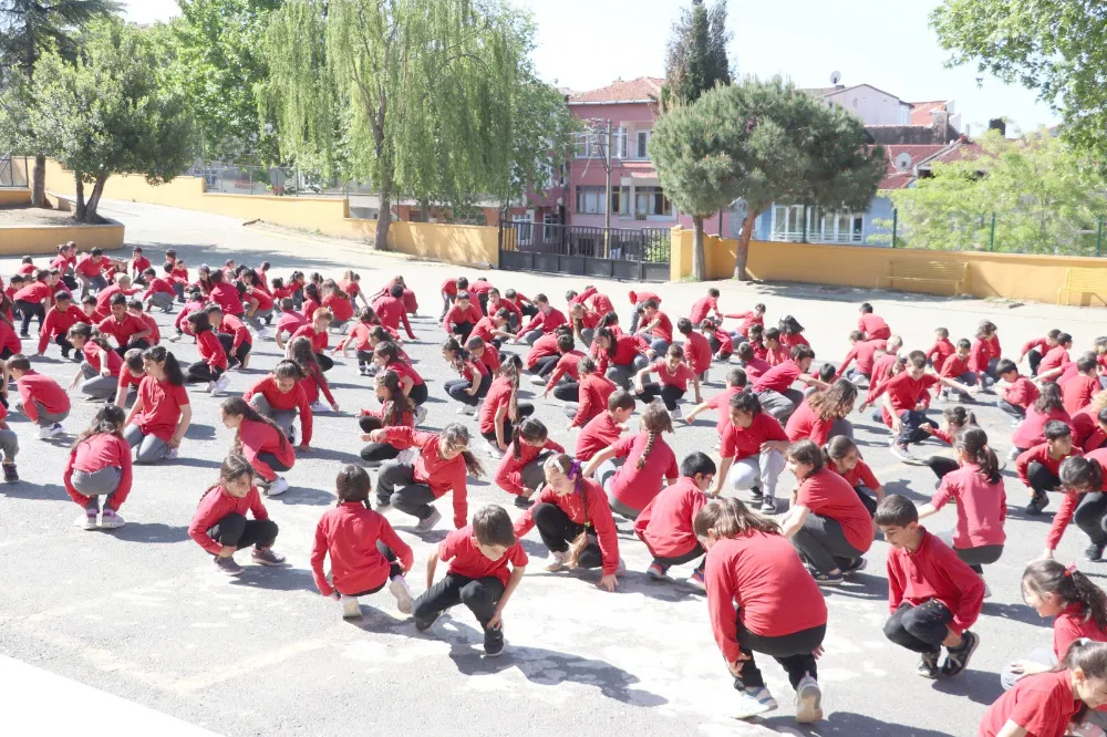 Tekirdağ’da öğrenciler, "Önce Egzersiz Sonra Dersimiz" sloganıyla düzenlenen fiziksel aktivite etkinlikleri yaparak derse giriyorlar.