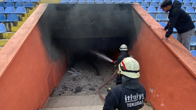 Tekirdağ Çorlu General Basri Saran Stadyumu’nda çıkan yangın paniğe neden oldu.