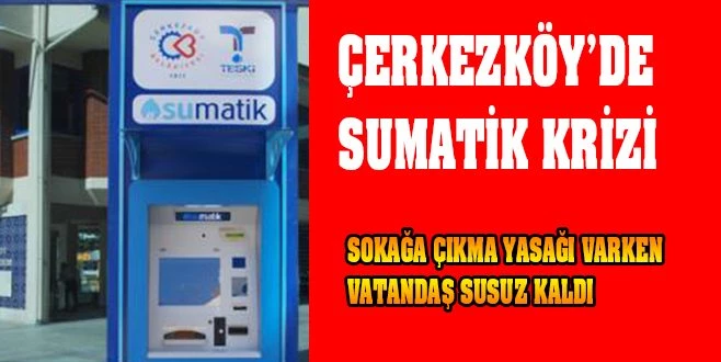 Çerkezköy`de sumatik krizi yaşanıyor. Korona virüs mücadelesi kapsamında bir dizi tedbirler alan belediyeler, vatandaşın her an ihtiyaç duyduğu sumatikleri ihmal etti. TESKİ`nin Çerkezköy Belediyesi önüne koyduğu sumatiklerin iki gündür arızalı olduğunu söyleyen vatandaş, Çerkezköy Belediyesi başta olmak üzere kimseden yardım alamamaktan yakındı.
