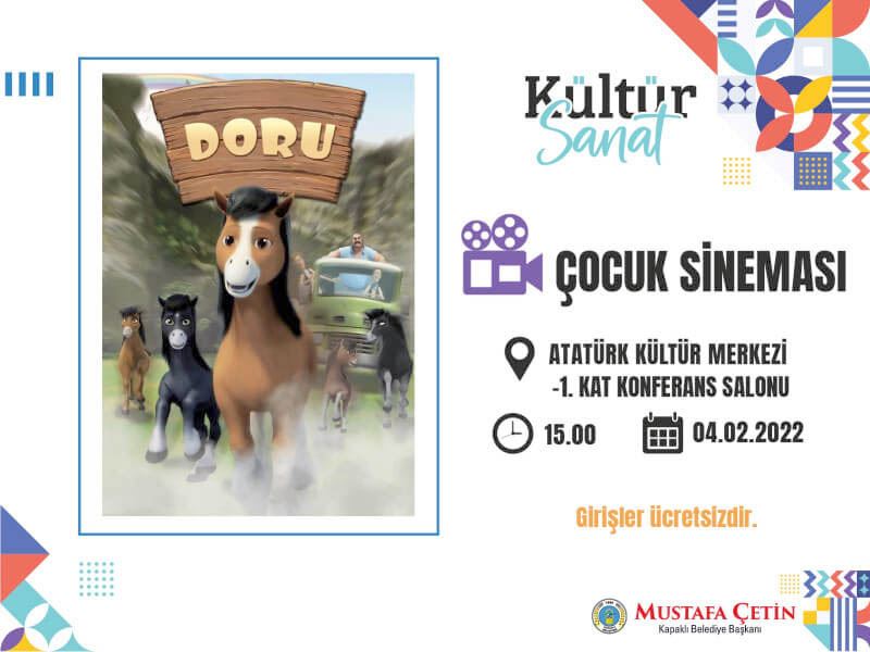 Şubat ayı kültür sanat etkinlikleri 4 Şubat Cuma günü saat 15.00’da ‘Doru’ adlı çocuk filminin gösterilmesiyle devam edecek. 11 Şubat Cuma saat 15.00’da ise Bana Masal Anlatma adlı yetişkin sineması vatandaşlarla buluşturulacak. 14 Şubat Sevgililer Gününde ise Aşk Tesadüfleri Sever filmi saat 20.00’da gösterilecek.