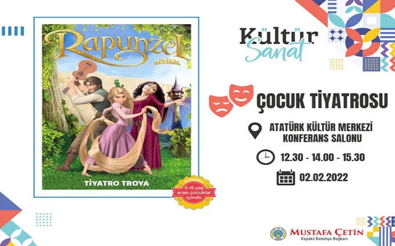 Kapaklı Atatürk Kültür Merkezi’nde gerçekleştirilecek Şubat ayı kültür sanat etkinlikleri çocuk tiyatrosu ile başlayacak. ‘Rapunzel’ adlı oyun 2 Şubat Çarşamba günü saat 12.30, 14.00 ve 15.30 olmak üzere üç seans halinde sahnelenecek. 3 Şubat Perşembe günü saat 15.00’da ise ‘Sagu Pagu’ adlı filmi çocuklarla buluşturulacak.