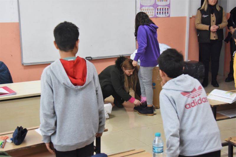 Dezavantajlı kesim olarak kabul edilen ailelerin çocuklarının yoğunlukta olduğu Aydoğdu İlkokulu’nda öğrenim gören öğrencilerden, Süleymanpaşa İlçe Milli Eğitim Müdürlüğü tarafından ihtiyaç sahibi olduğu belirlenen çocuklara, beden ve ayakkabı numaraları tespit edilerek,Süleymanpaşa Belediyesi Gönül Elçileri ekiplerince yepyeni mont ve botları teslim edildi.