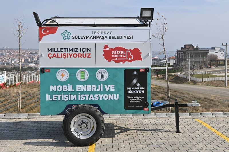 Süleymanpaşa Belediyesi Fen İşler Müdürlüğü, kendi bünyesindeki atölyelerde, belediye imkânları ile deprem bölgelerinde kullanılmak üzere mobil enerji ve iletişim istasyonu yapıyor. Başkan Yüksel’in talimatları doğrultusunda harekete geçen Süleymanpaşa Belediyesi Fen İşleri Müdürlüğü ekipleri, belediyenin atölyelerinde kendi kaynakları ile Mobil Enerji ve İletişim İstasyonu adı verilen, içerisinde aynı anda 18 mobil cihazın şarj edilebileceği kilitli şarj üniteleri, aydınlatma tertibatı, sesli anons sistemi, telsiz donanımı, güneş enerjisi panelleri ve jeneratör bulunan römork şeklinde araçlar tasarlayarak üretime başladı.