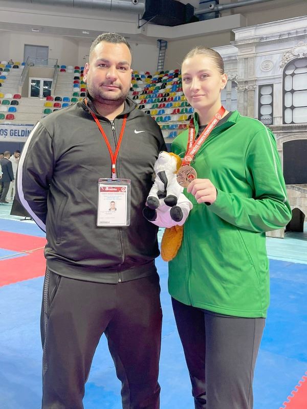 Türkiye Karate Federasyonu tarafından organize edilen ve 3-6 Şubat tarihleri arasında İzmit’te gerçekleştirilen Türkiye Büyükler Karate Şampiyonası ve Milli Takım Seçmeleri, 41 ilden 159 kulüp ve 486 sporcunun katılımıyla yapıldı. Süleymanpaşa Belediyesi Gençlik ve Spor Kulübü temsilcisi Hira Nur Kasatura, Kumite dalında 68 kiloda üçüncülük elde ederek bronz madalyaya layık görüldü. Türkiye’nin en iyilerinin tatamiye çıktığı Büyükler Karate Şampiyonasında mücadele eden sporcu, başarılı performansı ile Tekirdağ’ın gururu oldu. Türkiye Büyükler Karate Şampiyonası’nda kategorilerinde ilk üç sırayı alan sporculara madalyalarını Karate Federasyonu Başkanı Av. Dr. Aslan Abid Uğuz, Yönetim Kurulu Üyeleri Serpil Barış, Hatun Albayrak Şengüloğlu, Fatih Kaya ve Teknik Kurul Başkanı Adnan Şamdan takdim etti.