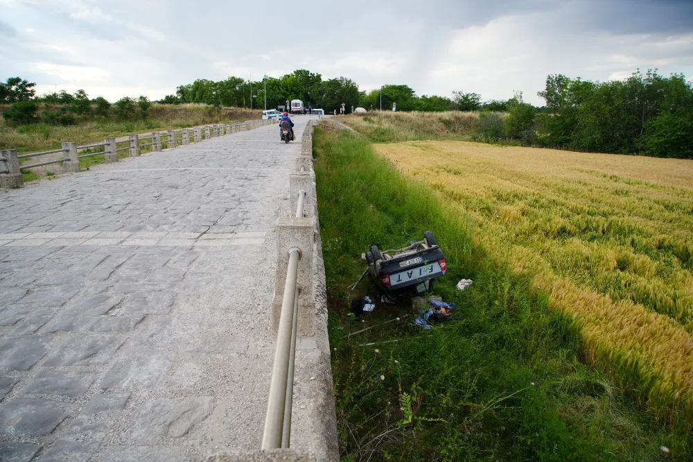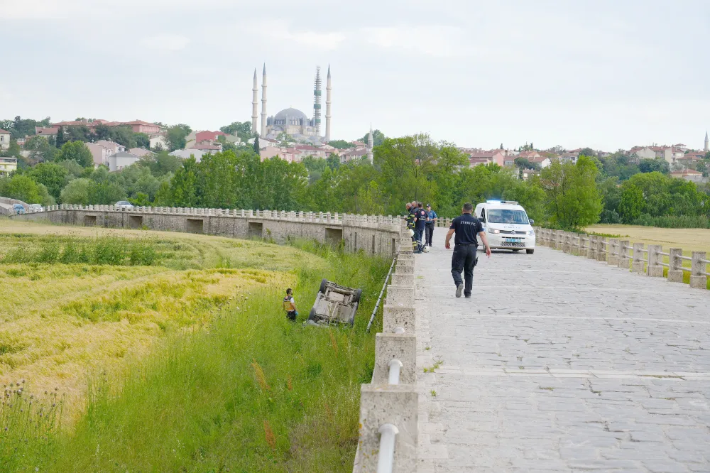 Edirne’de alkollü kamyonet sürücüsü, direksiyon hakimiyetini kaybetmesi sonucu aracıyla tarihi Saraçhane Köprüsü’nden uçtu. Meydana gelen kazada 573 yıllık köprü de zarar gördü.
