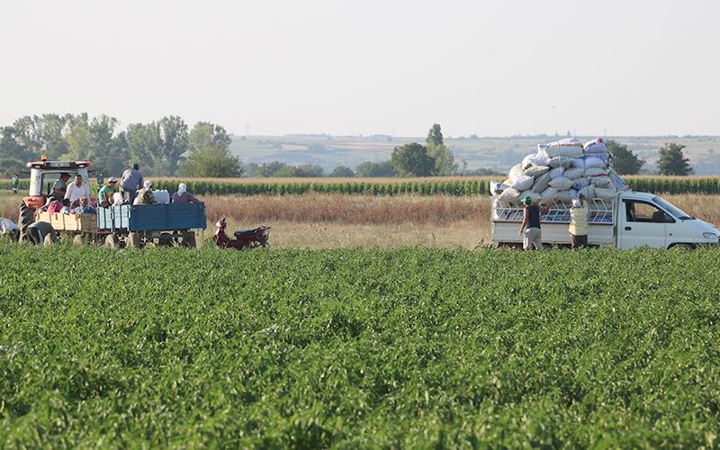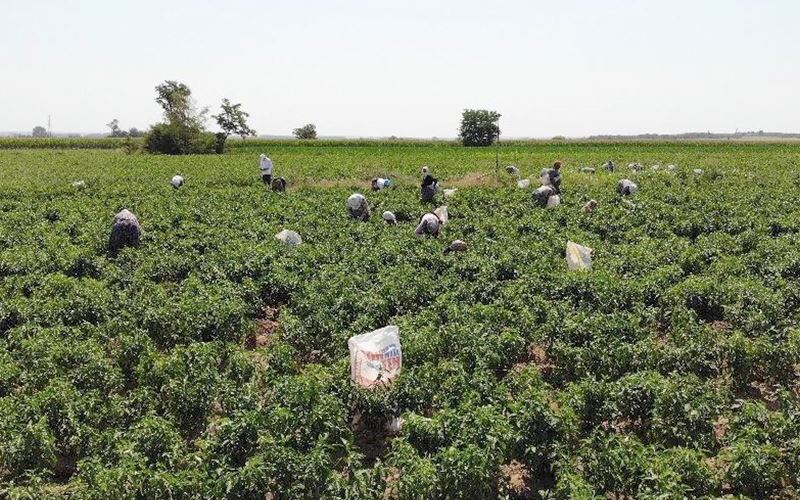 Edirne’de tava ciğerin can yoldaşı acı biberin toplanması için zaman zaman 40 dereceyi bulan sıcak havada güneşin altında çalışan tarım işçileri alın teri ile ekmek parası kazanıyor.