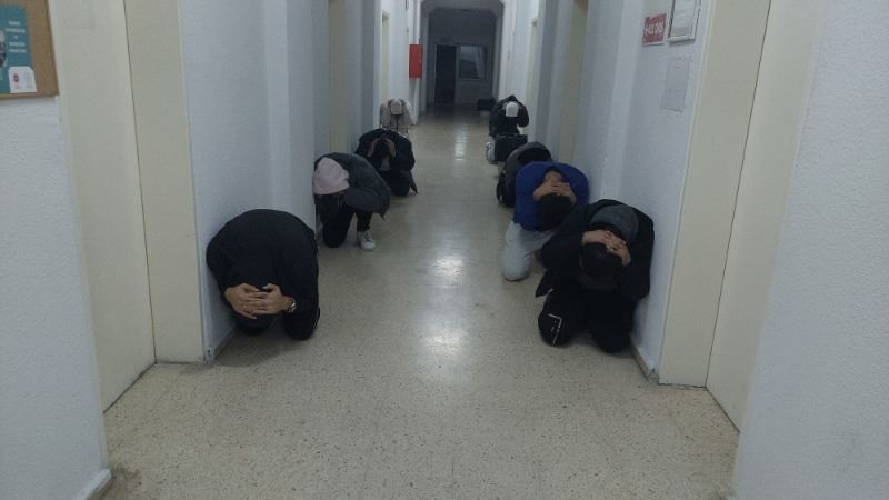 Tekirdağ Kredi Yurtlar Kurumunda gerçekleştirilen deprem tatbikatı gerçeğini aratmadı.