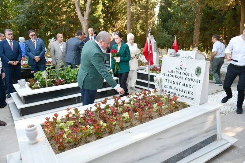 Ardından TBMM Başkanı Şentop ve Vali Yıldırım, şehitlerimizin mezarlarını ziyaret ederek gül bıraktı.