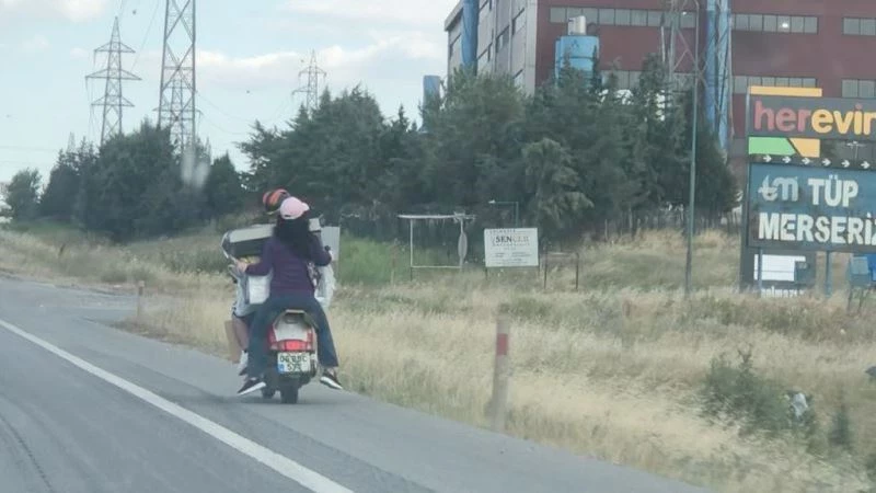 Lüleburgaz ilçesine bağlı Büyükkarıştıran beldesi mevkiinde seyir halinde olan motosiklette eşyalara tutunarak yolculuk yapan çocuk, kameralara yansıdı. Seyir halinde olan motosiklette 9-10 yaşlarındaki çocuk eşyaların bağlı olduğu ipe tutunarak güvende kalmaya çalıştı. Emniyet şeridinde ilerlemeye çalışan motosiklet sürücüsü ve çocuğun tehlikeli yolculuğunu gören sürücüler uyarılarda bulundu.