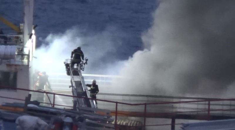 Marmara Denizi’nin Tekirdağ açıklarındaki bir feribot alev alev yandı. Ekipler tarafından soğutma çalışması başlatıldı ve yangın kısa sürede söndürüldü.