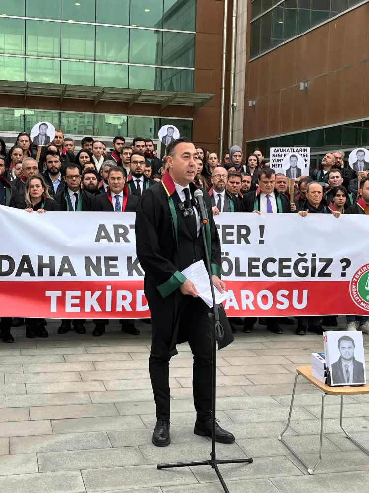 Tekirdağ Barosu tarafından Çorlu’da düzenlenen anma programında konuşan Baro Başkanı Egemen Gürcün, avukatlara yönelik artan şiddete sert tepki gösterdi. Gürcün, “Bir avukat öldürülüyorsa adaletin sesi susturulmak isteniyor. Susmayacağız, kabul etmiyoruz” dedi.